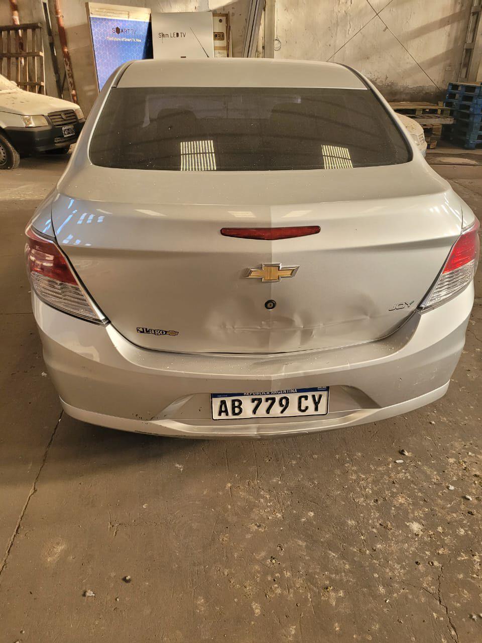 Se trata de un automóvil marca Chevrolet, modelo "Prisma Joy 4P, 1.4 N SL MT", sedan 4 puertas, color gris claro. Dominio "AB 779 CY". Modelo año 2017. El vehículo enciende. Posee un buen estado, con detalles de chapa en parte posterior. Su odómetro marca 53.417 kilómetros. El vehículo se encuentra en la ciudad de Bahía Blanca.