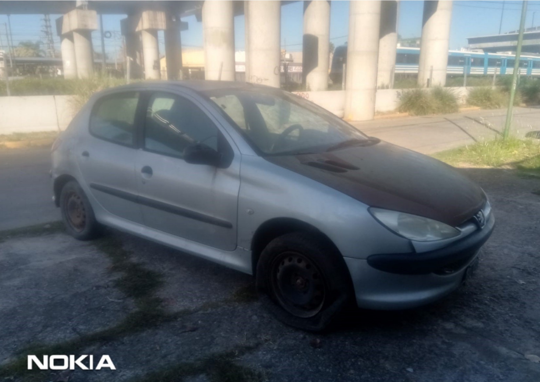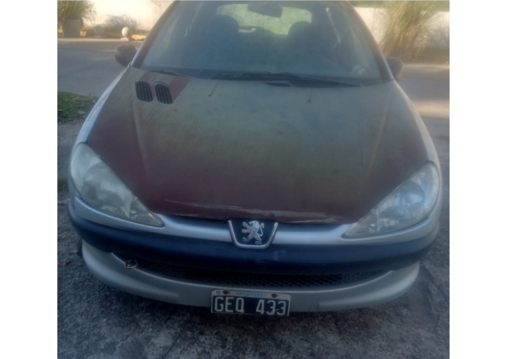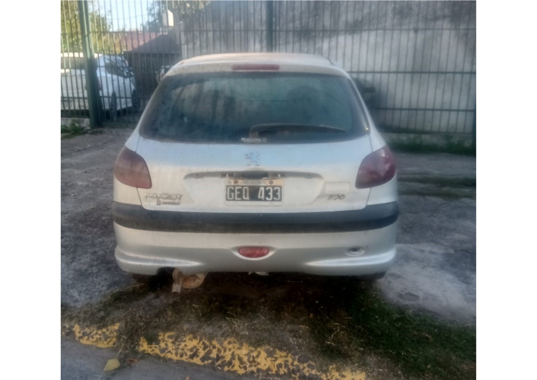 PEUGEOT, tipo SEDAN 5 puertas, modelo 206X-LINE1.4 5P , año 2007, Dominio: GEQ433; color GRIS, MOTOR MCA:PEUGEOT N°: 10DBS10031505; CHASIS MCA: PEUGEOT N°: 8AD2AKFWU7GO71769, radicado en la Provincia de RIO NEGRO , posee el capot sin pintar oxidado, protección frontal rota, parabrisas fajado, carcasa espejo retrovisor izquierdo rota, lamparones en pintura zona lateral frontal izquierda y techo, rayaduras en toda la carrocería, luz delantera izquierda indicadora de guiño roto, falta cerradura puerta conductor, picaporte puerta trasera derecha roto, vaguetas de goma deterioradas y rotas en distintos tramos, golpe con hundimiento chapa sobre guardabarros trasero izquierdo, protector picaporte portón trasero roto, luces de patente toras, cuatro llantas de chapa oxidadas, las dos cubiertas delanteras desinfladas y deterioradas, interior habitáculo sucio y con tapizados manchados. Carece de llave, panel puerta de conductor roto. Su estado es regular.
