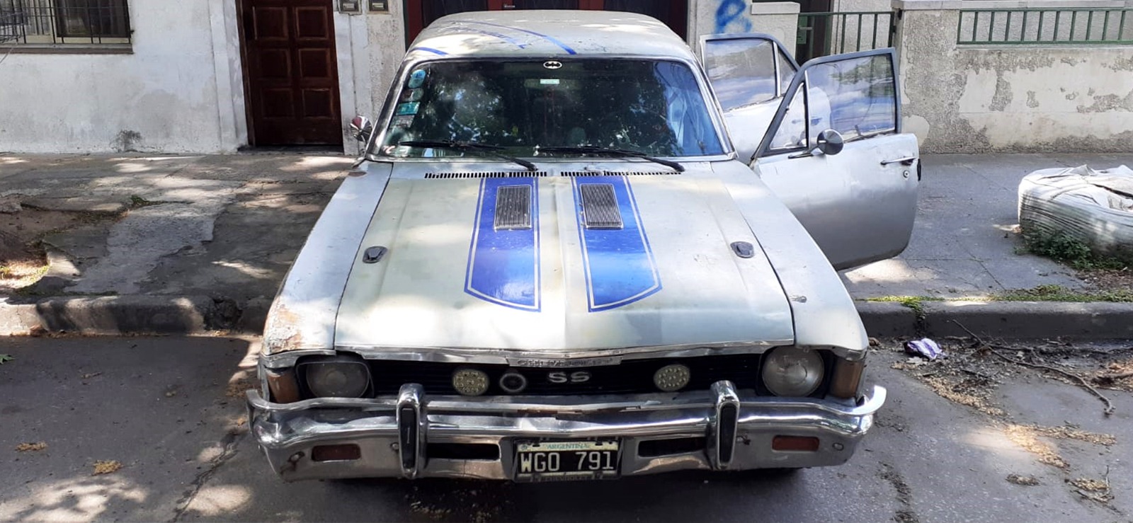 En Curso - Automotor marca Chevrolet, dominio WGO791, modelo Chevy 11569/244, 4 puertas, Tipo ZZ, Super Sport, fecha de inscripción año 1970, motor N° A259-13748 - Chasis C 808602. Según el informe de constatación obrante en autos, el estado se puede calificar como MALO teniendo en cuenta el estado de conservación y la antigüédad del vehículo. Exterior e interior en mal estado de conservación con equipo de GNC.