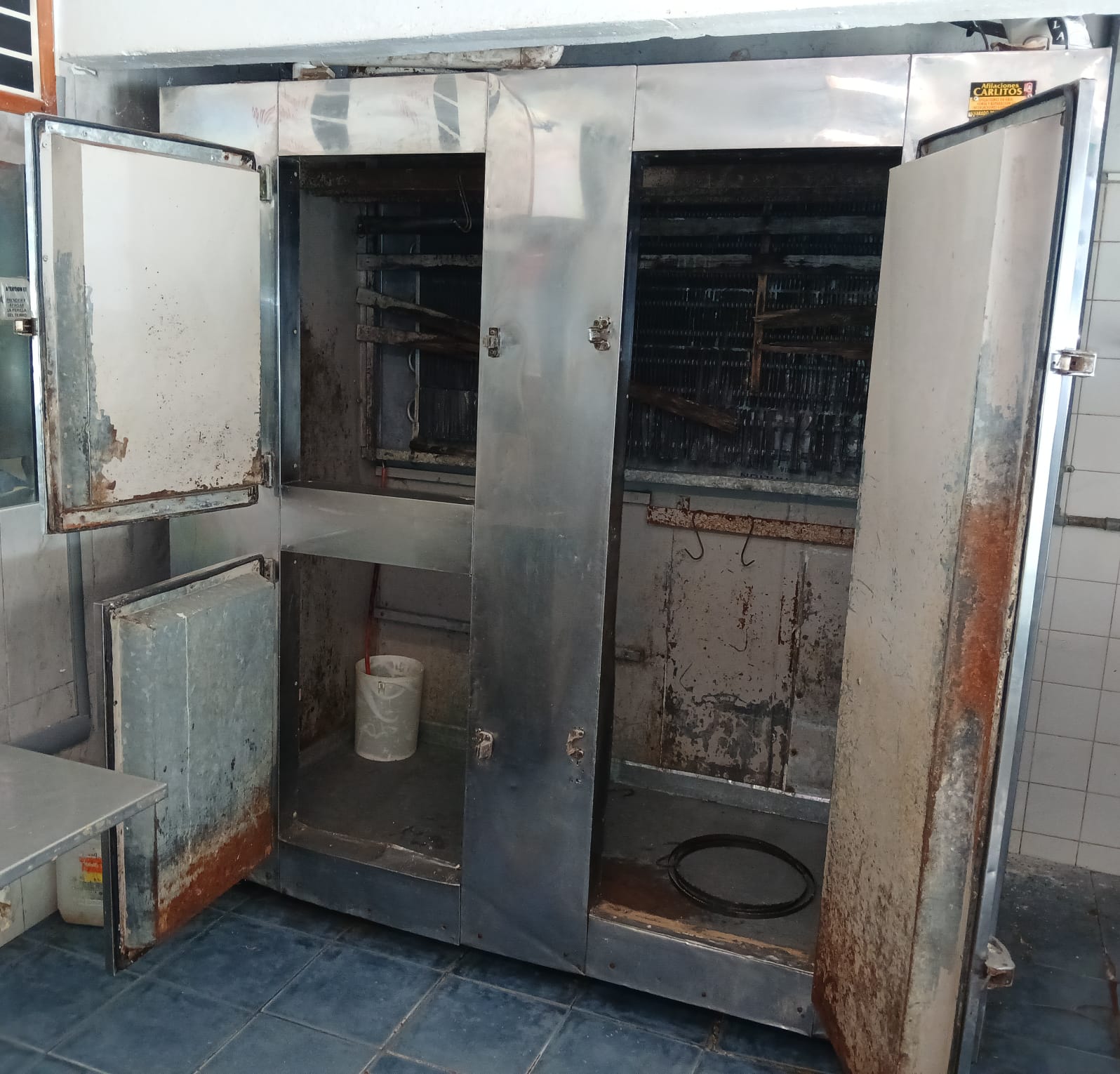 CÁMARA DE FRÍO DE ACERO INOXIDABLE 3 PUERTAS DE 2,20 METROS DE ALTURA Y DOS METROS DE LARGO.